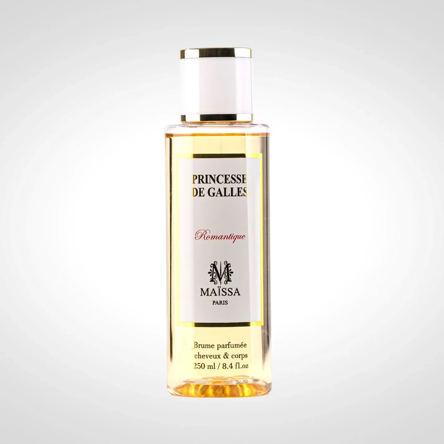 La brume pour femme Princesse de Galles, de la marque Maïssa Paris, est inspirée par l'élégance et la douceur de Lady Di, en célèbrant la féminité et la tendresse. Son bouquet de fleurs blanches, sublimé par une note d'amande délicate, évoque la douceur des dragées et l'atmosphère intime des mariages et baptêmes. Ce parfum raffiné devient l'accompagnement parfait pour les moments les plus précieux de la vie d'une femme.